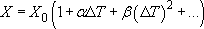Often the constant β is small enough that ΔX is almost proportional to ΔT. Then α is called the linear temperature coefficient of the property (expansion, resistance or whatever) and we can express the change in X as: